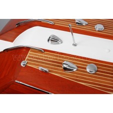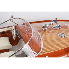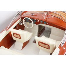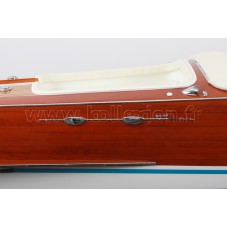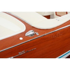 Véritable objet d’exception, cette maquette Riva Aquarama Spécial d’une longueur de 1,25m a été réalisée à l’échelle 1/7ème. Fidèle réplique du mythique Aquarama Spécial, cette maquette officielle exclusive est entièrement réalisée à la main à partir de matériau noble: Acajou pour le bois et véritable sellerie marine. Toutes les pièces d’accastillage sont en laiton chromé réalisées sur mesure par par des bijoutiers. 10 couches de vernis sont appliquées pour obtenir une excellente brillance et profondeur de vernis.