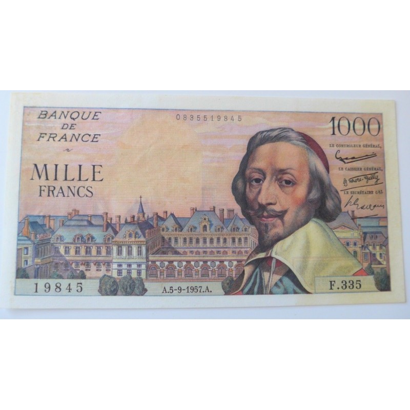RARE FRANCE 1000 Francs Richelieu 5.9.1957 335 Série F P.J.Favre-Gilly TTB à SUP
