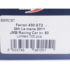 BBR C67 FERRARI F430 GT2 JMB n°83 Le Mans 2011 100ex 1.43 NB