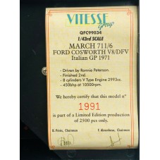 QUARTZO QFC99034 MARCH 711/6 n°25 Italian GP 1971 R.Peterson 1.43