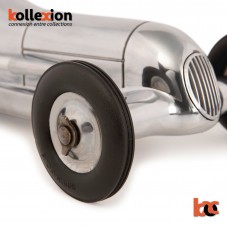 Les années 1930 ont vu l'essor des modèles réduits de voitures de course, connus sous le nom de spindizzies ou de voitures d'attache. Des voitures de course miniatures construites par des amateurs tournaient autour de pistes en bois inclinées à des vitesses approchant 150 miles par heure. Ressemblant aux coureurs de grande taille de leur époque, plusieurs spindizzies se sont affrontés à la fois, attachés par des câbles à un poteau central. Propulsés par des modèles réduits d'avions, les spindizzies ont couru contre la montre. Incroyablement détaillées et aérodynamiques, ces voitures de course miniatures étaient au-delà des jouets; c'étaient des œuvres d'art représentatives de la meilleure technologie pionnière de l'époque. Construit en utilisant des plans originaux, notre modèle Bantam Midget ressemble à l'original jusque dans les moindres détails. Un coup d'oeil et vous serez prêt à rejoindre la compétition.