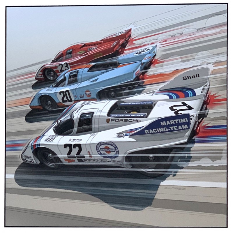 G. LOPEZ EDITIONS D'ART CADRE 95x95cms PORSCHE 917 Trio 150 ex.
